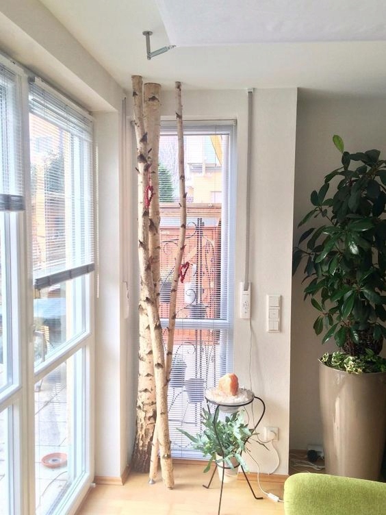 Березовая стена из палочек, ветвей, полюса дерева 240 см.