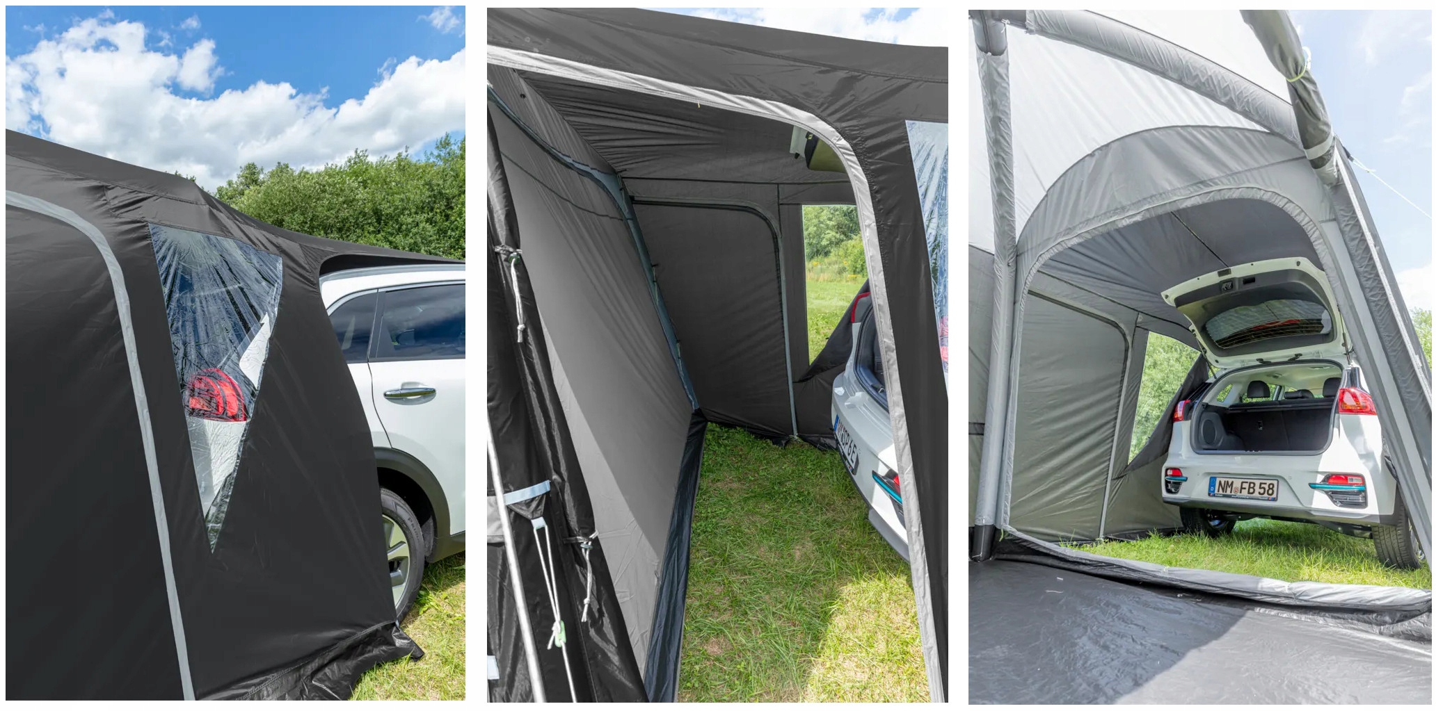 • Просторная конструкция с туннельным соединением с транспортным средством позволяет свободно передвигаться по палатке.