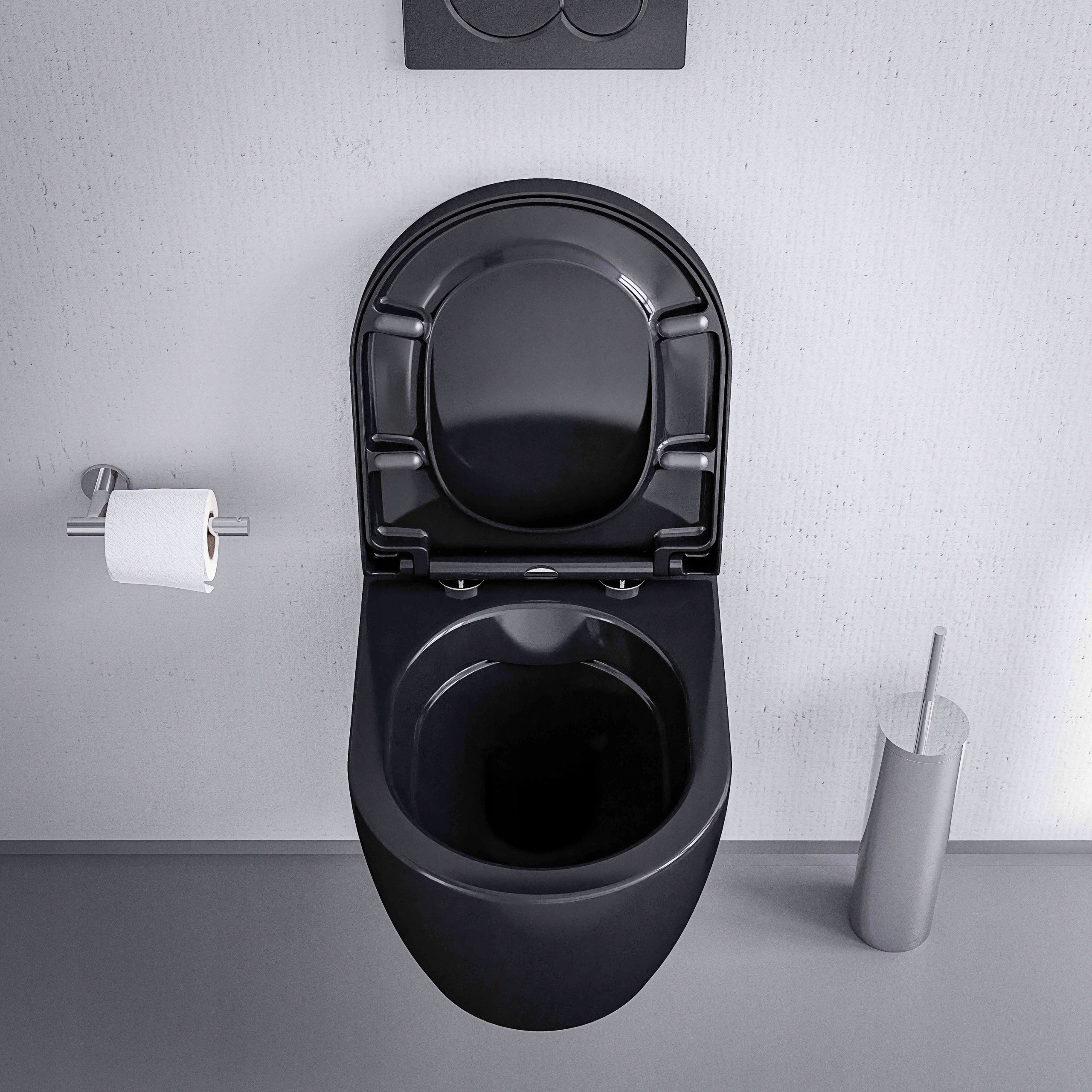 BERNSTEIN Короткий підвісний унітаз без бортика - сидіння Soft Close - чорний