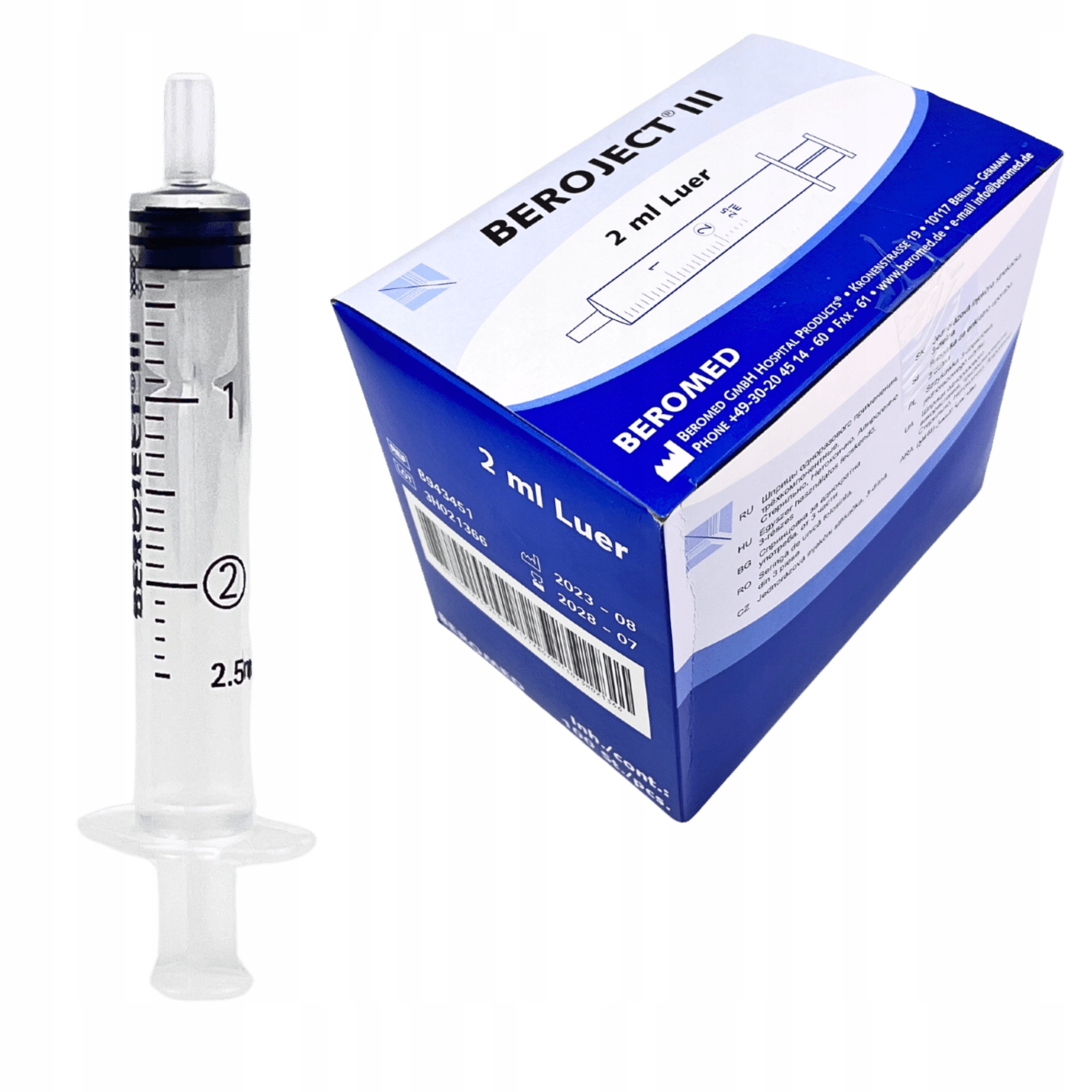 BEROMED BEROJECT LUER 3-Х ШПРИЦОВЫЙ ИНЪЕКЦИОННЫЙ ШПРИЦ 2 МЛ 100 ШТ.