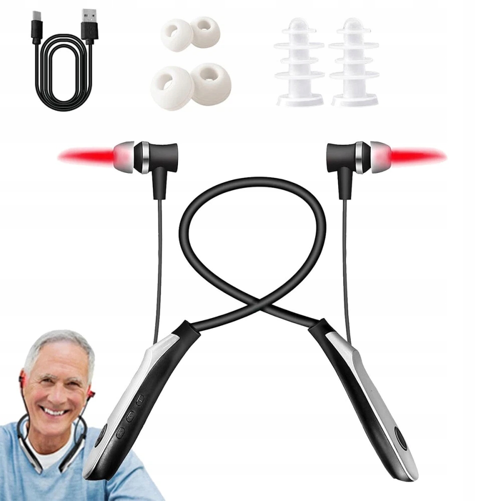★ Беруши для терапии красным светом, инфракрасные беруши для облегчения шума в ушах, устройство для облегчения шума в ушах, беспроводные перезаряжаемые наушники с подсветкой ушного канала, светоизлучающие беруши на шее для мужчин и женщин