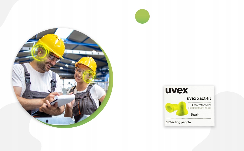 Не забывайте регулярно заменять пенопластовые насадки в затычках, чтобы обеспечить высочайший уровень гигиены, обеспечиваемый заглушками uvex xact-fit.