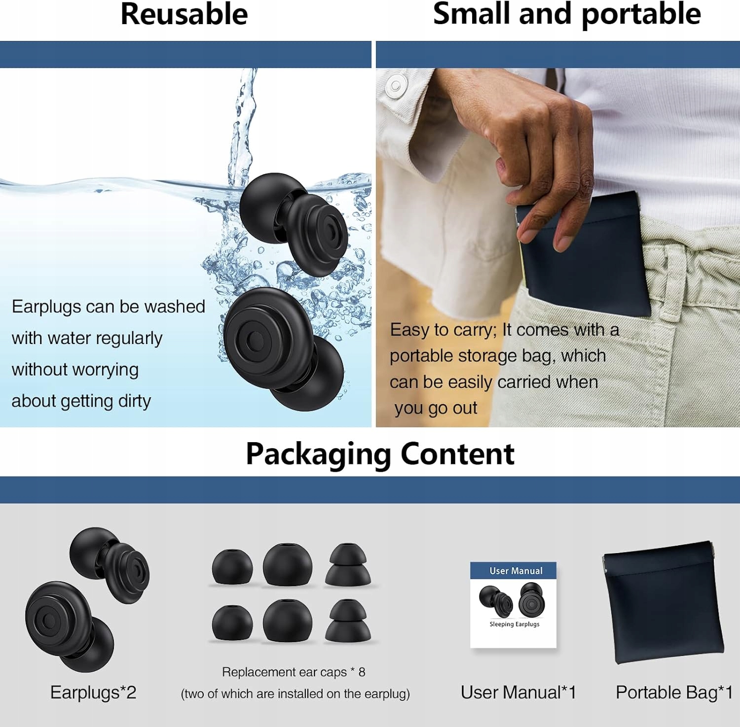 - Различные размеры В комплект поставки беруш для сна входят 4 пары наушников разных размеров (XS/S/M/L) и портативная сумка. Их легко носить с собой в путешествии. Четыре размера наушников подходят для разных людей. Вы можете менять их по своему вкусу, чтобы добиться максимально комфортного уровня.