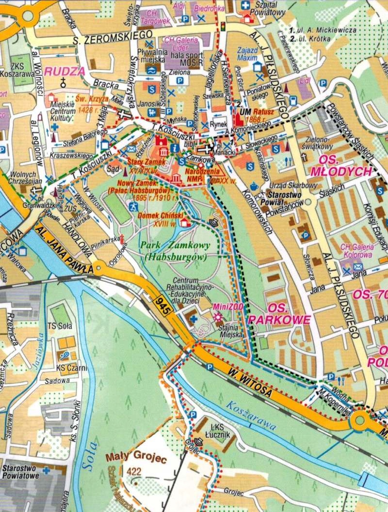 Издание также содержит план центра города Бельско-Бяла в масштабе 1:10 000 и Вадовице в масштабе 1:15 000.