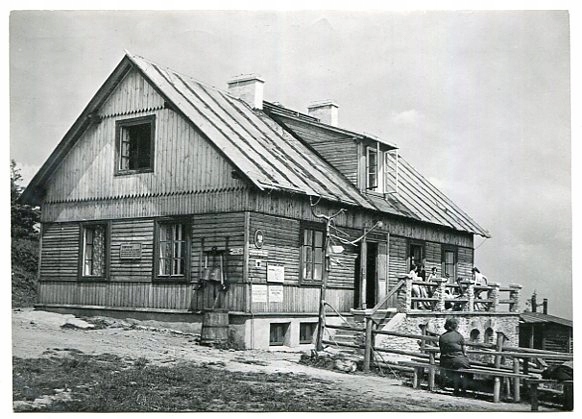 БЕСКИД ЖИВЕЦКИ :: Приют ПТТК на Вельке-Раце ::: старая открытка, вышедшая из обращения, с маркой и печатью почтового агентства в приюте