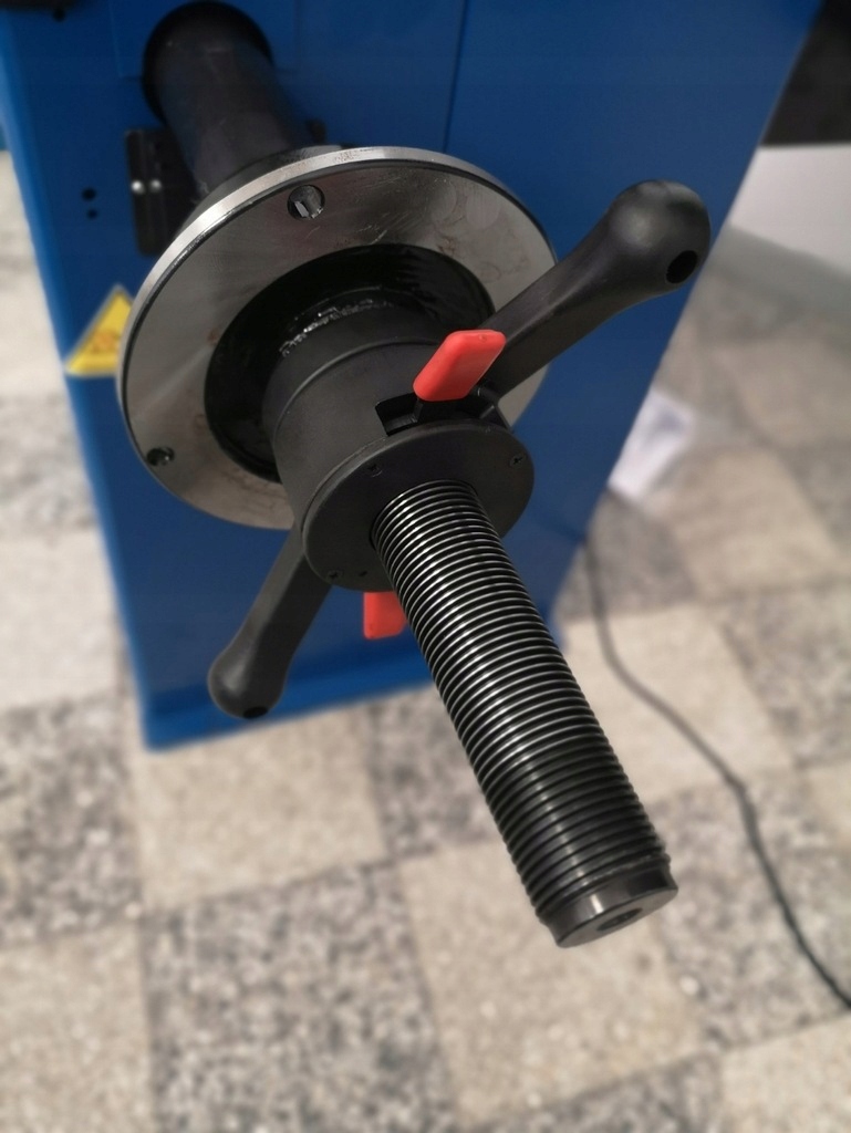Машина измеряет расстояние, диаметр и ширину колеса благодаря двум измерительным рычагам.