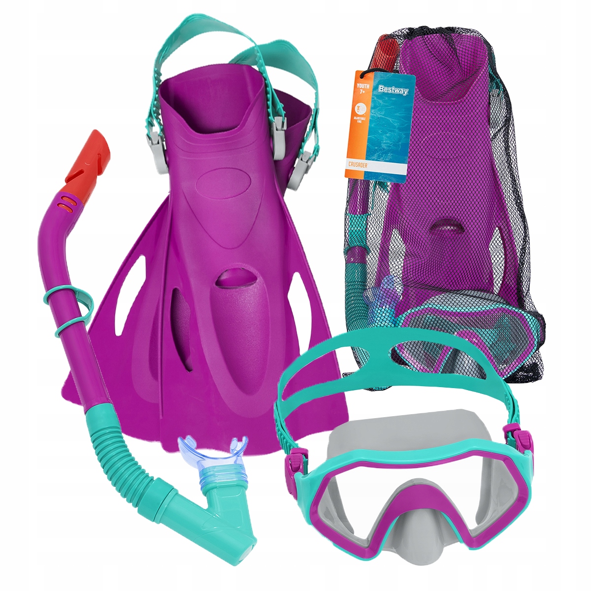 Детский Diving Set Set Crusader ™ Bestway b> - это полное оборудование, разработанное специально для самых молодых любителей водных приключений. Набор состоит из трех основных элементов: масок, плавников и трубок.
