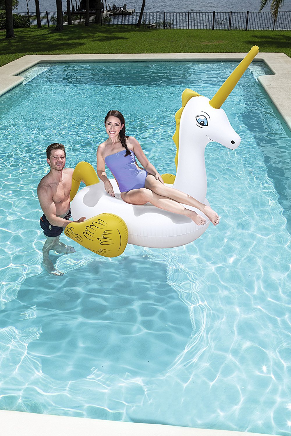 <ул>Потрясающий матрас-единорог. Оригинальный внешний вид наверняка привлечет внимание многих любителей пляжного отдыха.