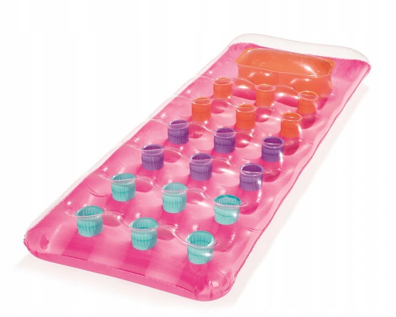 Удобный, яркий матрас из прочного, предварительно проверенного винилового материала. Он состоит из двух воздушных камер и имеет перегородочную конструкцию. Он оснащен прозрачным окном-подушкой и разноцветными отверстиями по всей поверхности. В комплект входит ремонтная заплата, пригодится при механических повреждениях.