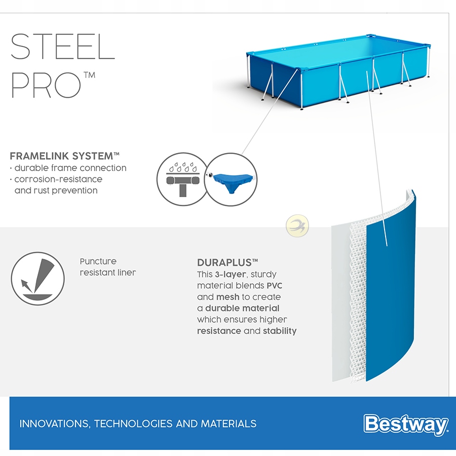 Уникальный садовый бассейн, который обеспечивает охлаждение в жаркий летний день. Офис настоящий бассейн и восхищайте своих друзей этим уникальным бассейном! Bestway Steel Pro Max Pool of Bestway, размер 400 см х 211 см х 81 см и емкость 5700 л .