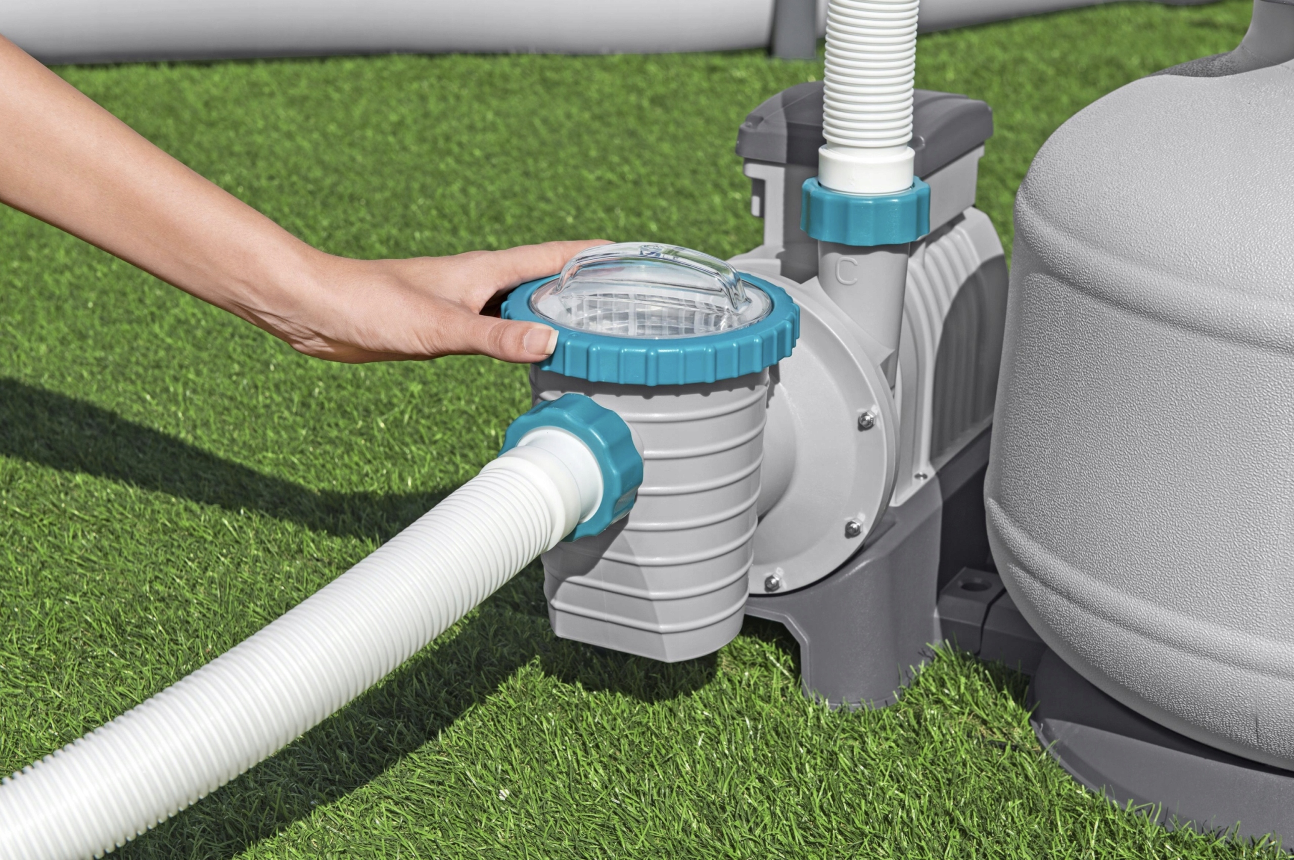 Функция полоскания песка доступна без удаления его, переключая настройки на голову на песок. Вся операция длится около 2 минут и должна использоваться регулярно (в зависимости от степени грязи), насос является экономическим решением, он работает с эффективностью 11355 l/h и, следовательно, работает в самых больших пулах. позволяет вам чистить воду в бассейн дешево и эффективно. Продукт подходит для бассейнов с емкостью 1100-666600 л .