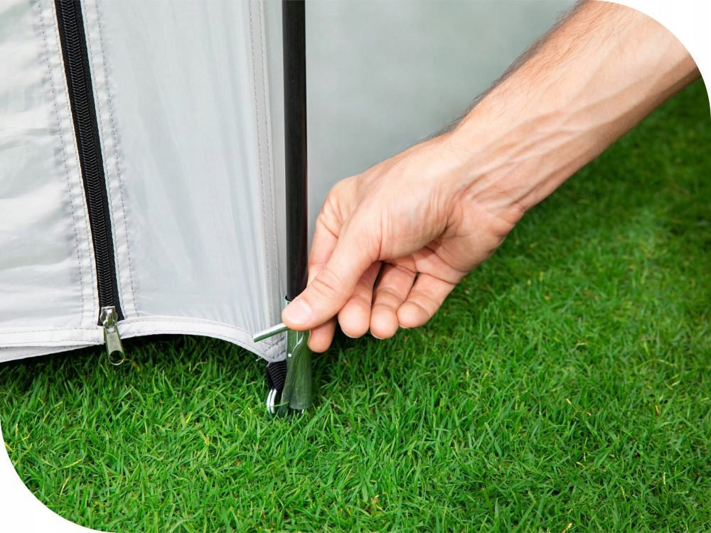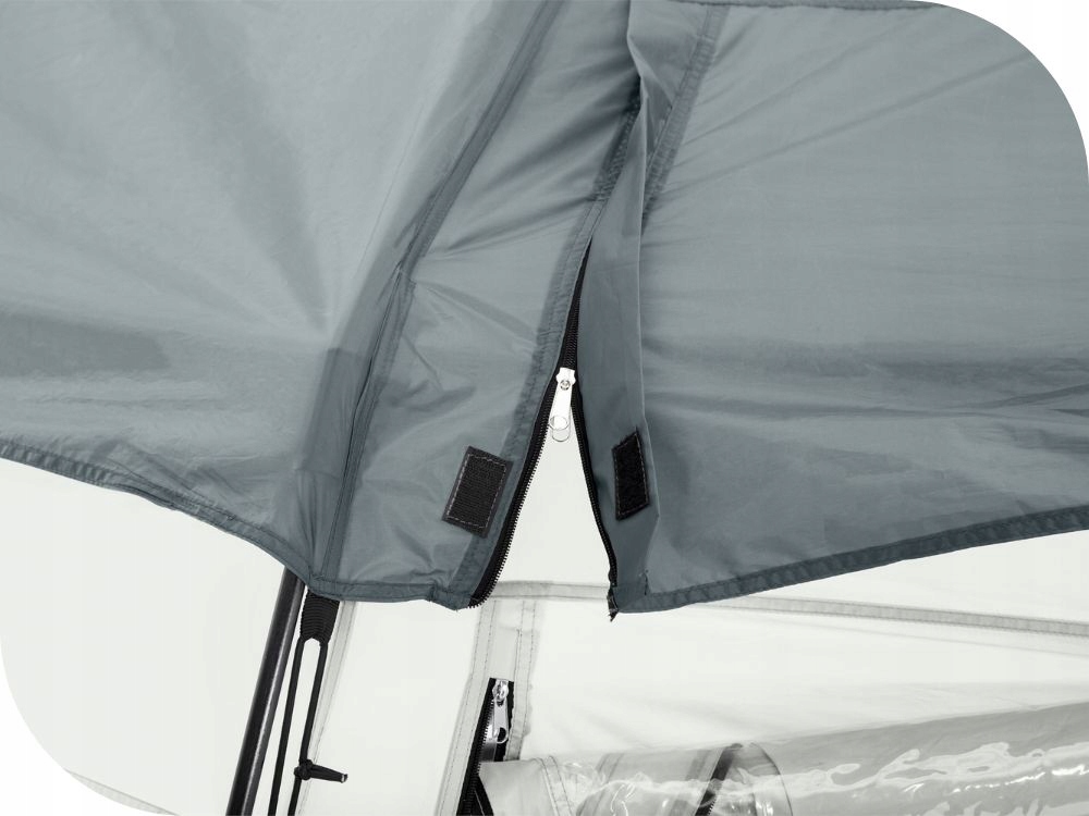 Это похоже на палатку - у него есть два входа и восемь больших прозрачных окон ПВХ.