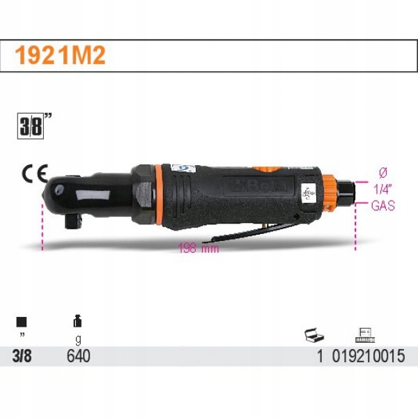 Пневматический, двухэтажный угловой ключ, с храповым механизмом, с 3/8 "Картером", Модель 1921M2, 27 нм