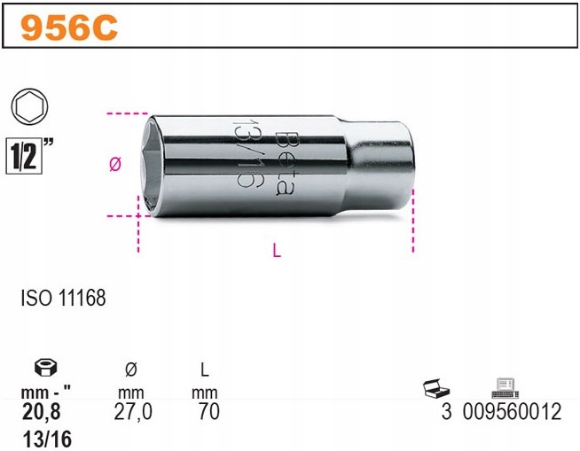 BETA Головка 1/2"-20.8 для свічок запалювання BE956C
