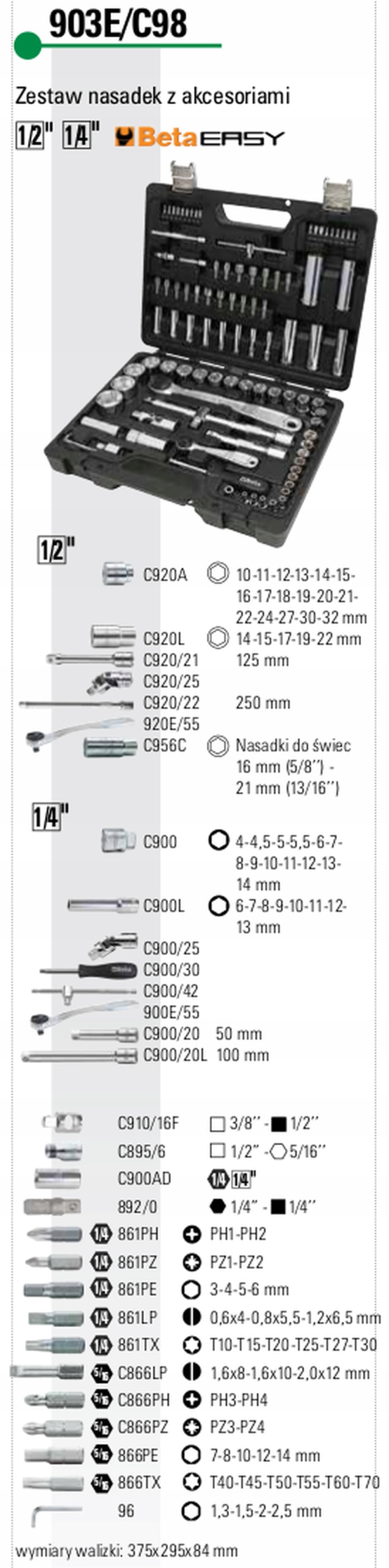 BETA НАБІР ГОЛОВОК 1/4" ТА 1/2" BE 903E/C98