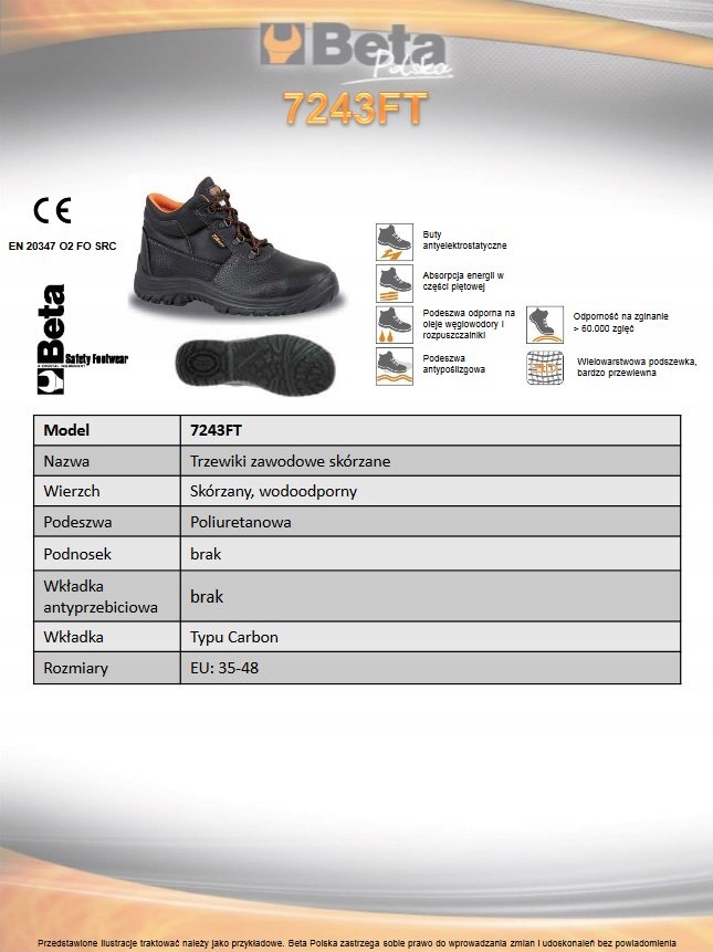 Оплачивая «BETA ВИСОКІ РОБОЧІ ЧЕРЕВИКИ БЕЗ НОСКА 7243FT R 36», вы можете быть уверены, что данный товар из каталога «Ботинки» будет доставлен из Польши и проверен на целостность. В цене товара, указанной на сайте, учтена доставка из Польши. Внимание!!! Товары для Евросоюза, согласно законодательству стран Евросоюза, могут отличаться упаковкой или наполнением.