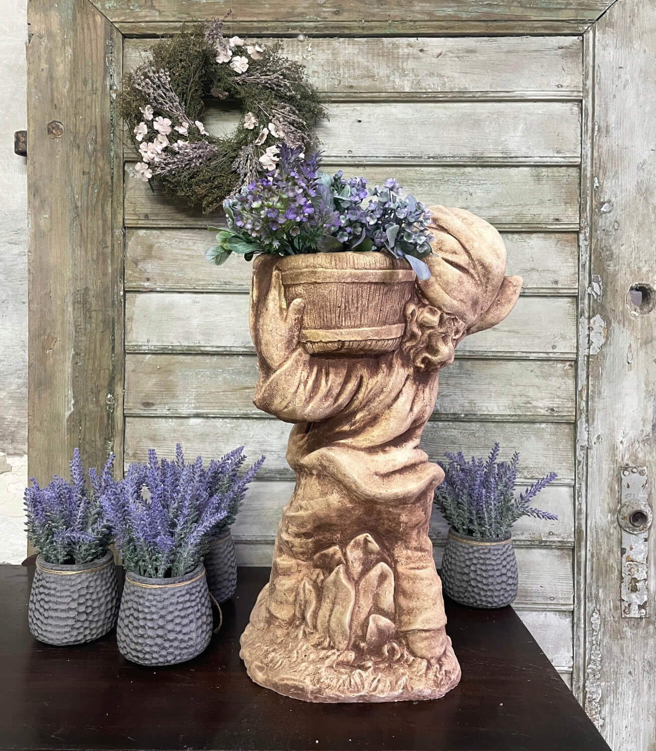 Бетонний гном з вазоном - унікальна прикраса саду, практичний дизайн