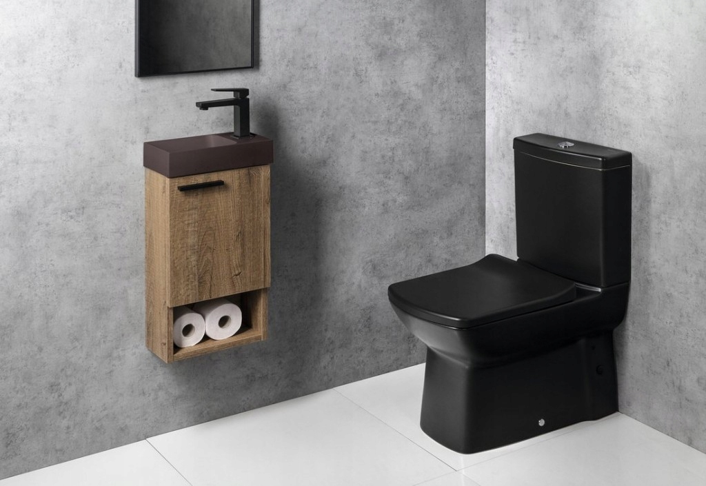 Бетонний умивальник PICCOLINO 30,8х17 см, кран справа, коричневий