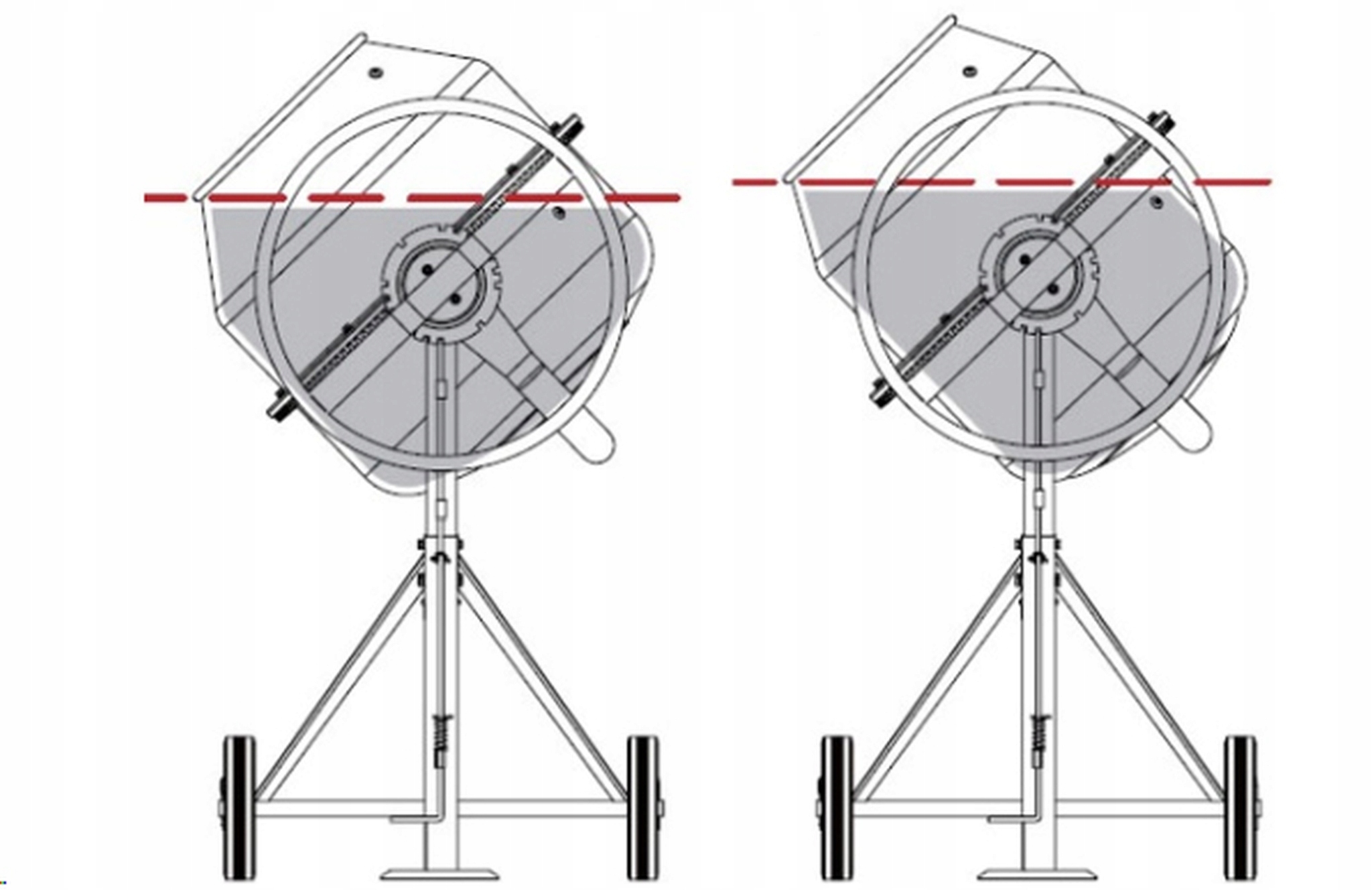 Мы можем похвастаться специальной формой барабана для смешивания. Использование данной формы имело целью повысить рабочую мощность барабана по сравнению со стандартной формой, а также повысить эффективность перемешивания строительного раствора. Кроме того, такая форма лучше распределяет вес, что делает бетономешалку гораздо более устойчивой во время работы и менее подверженной опрокидыванию.