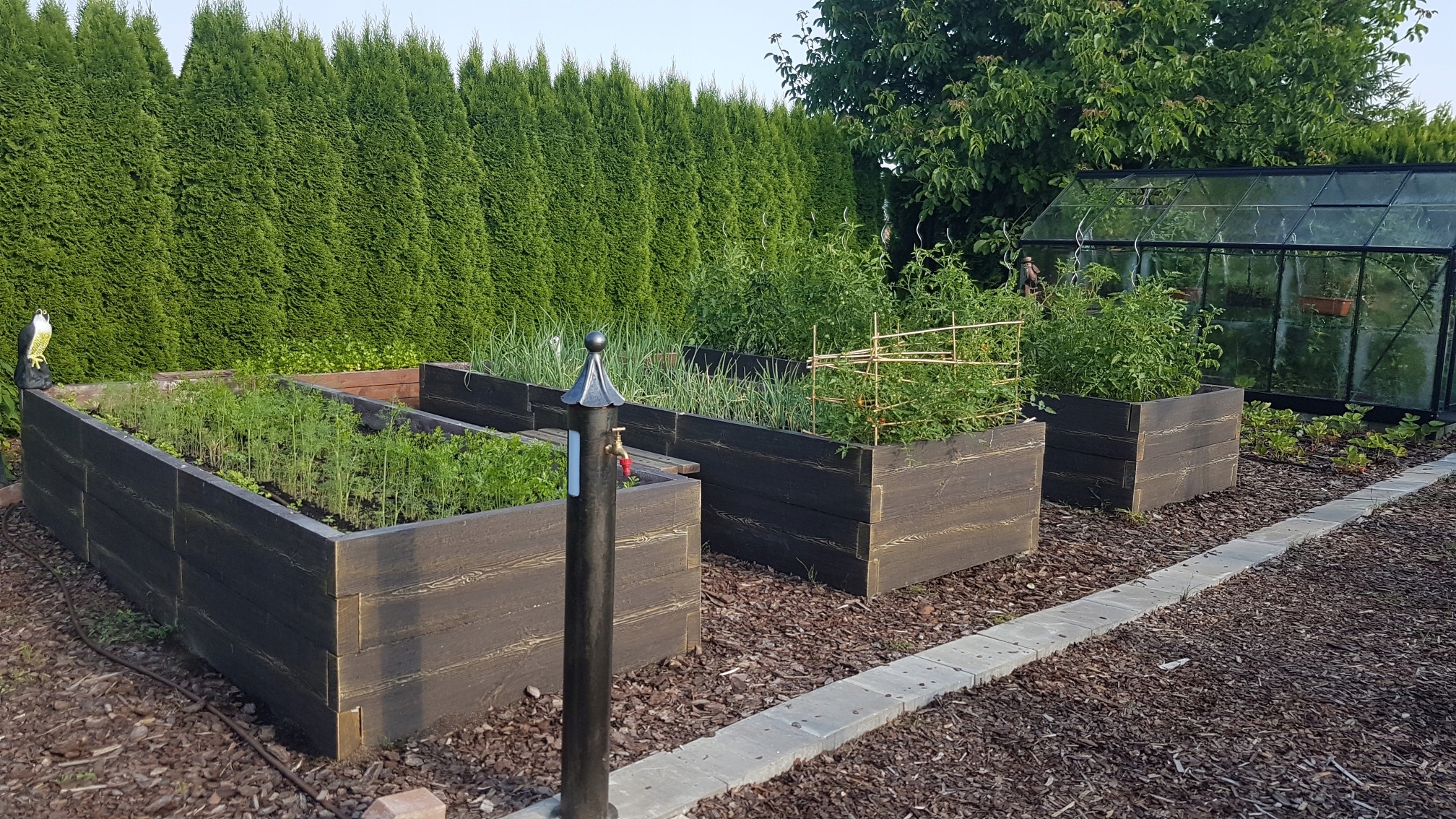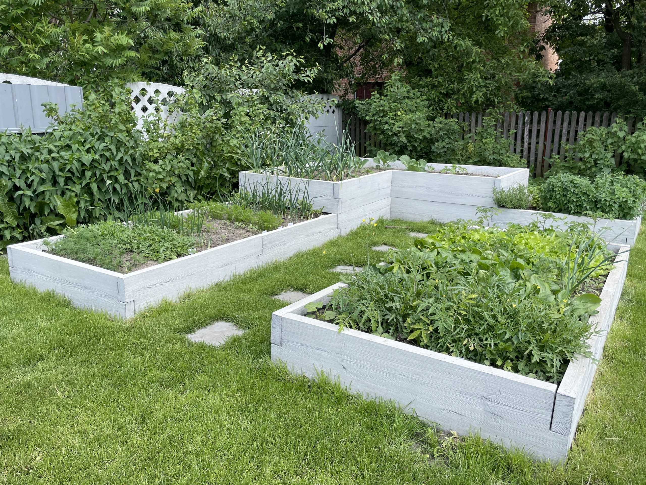 Betonowy warzywnik, skrzynie do uprawy warzyw, grządki podwyższone warzywne