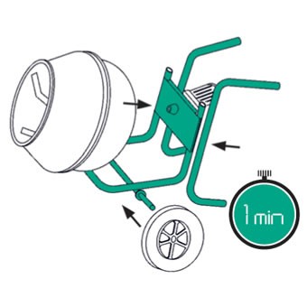 Сборка или разборка бетономешалки занимает всего минуту. Его можно транспортировать в коробке размером всего 66 х 73 х 70 см