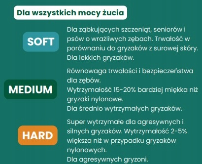 - Удовлетворяет инстинкт жевания - версия SOFT предназначена для собак с легкой силой жевания.