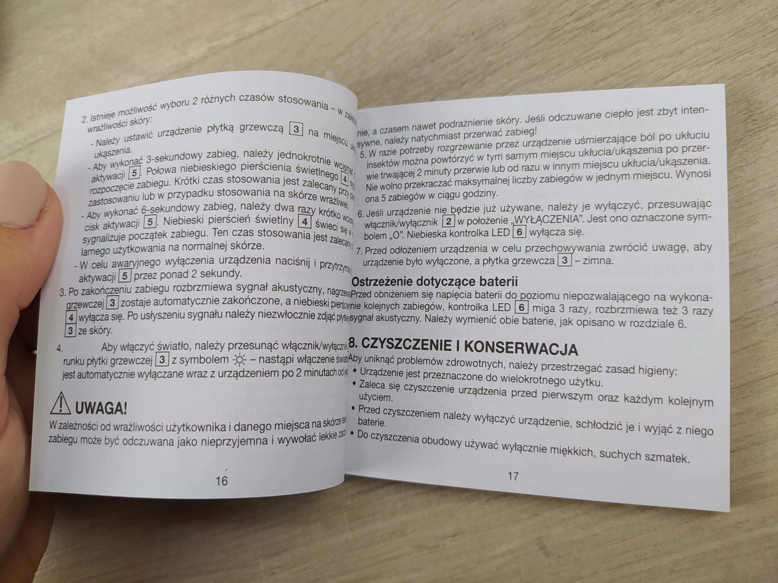 У каждого человека индивидуальная чувствительность к температуре. Поэтому каждый человек по-разному ощущает тепло во время использования. Аппарат, снимающий боль после укусов насекомых при температуре 50°С, безопасен для кожи, даже если она горячая. Температура необходима для облегчения таких симптомов, как зуд и отек.