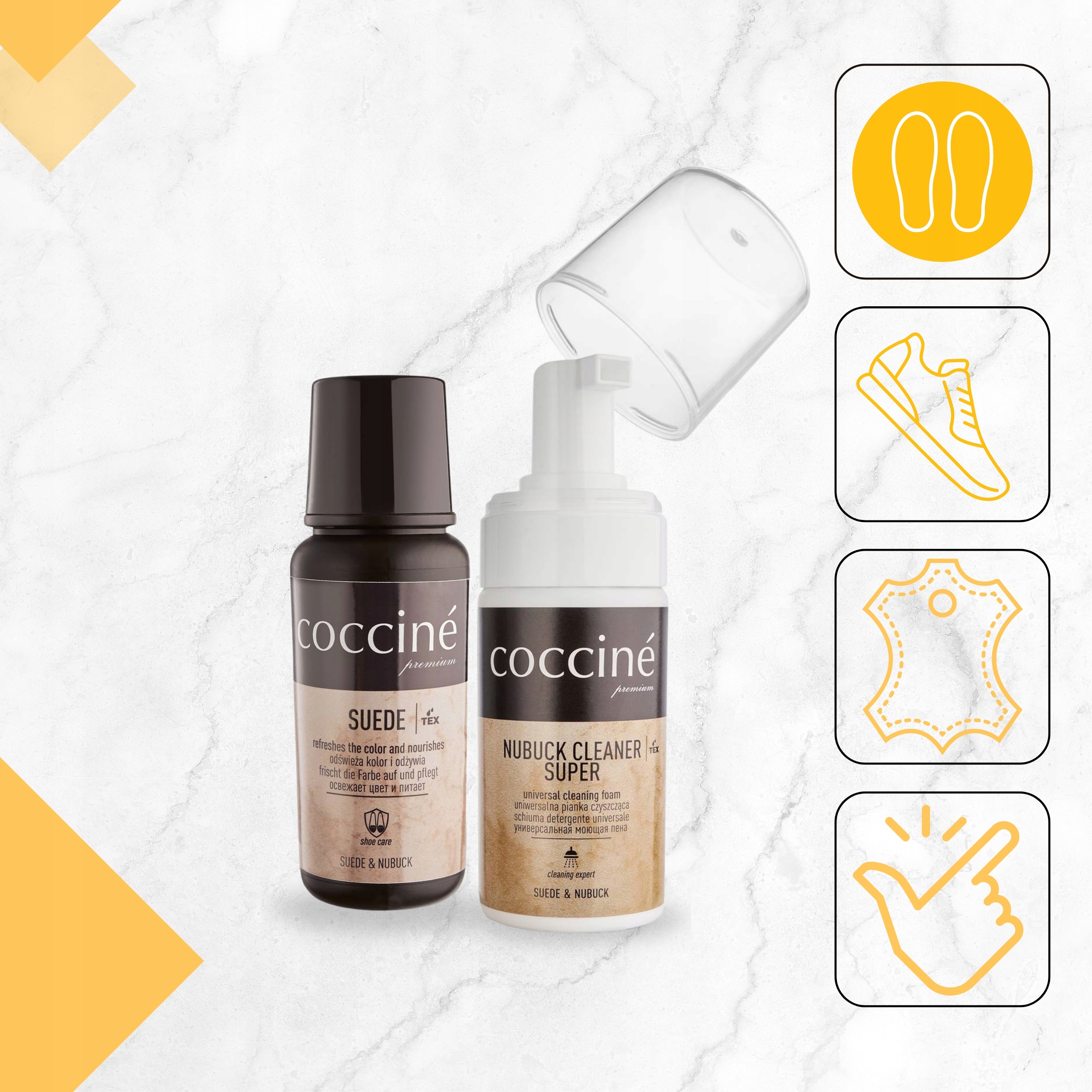Бесцветное средство для обновления замши из нубука с чистящей пеной Coccine, набор 2 в 1