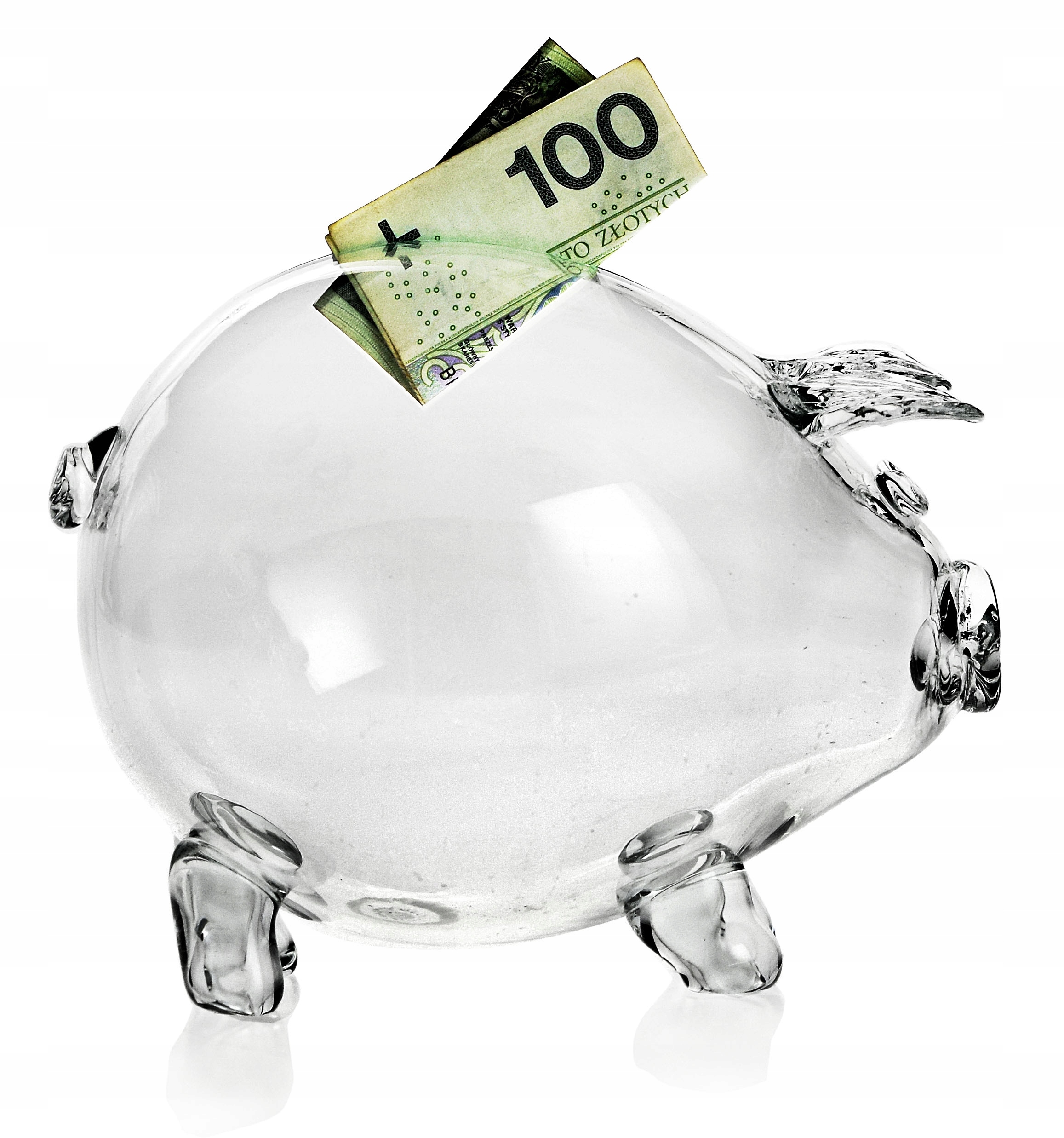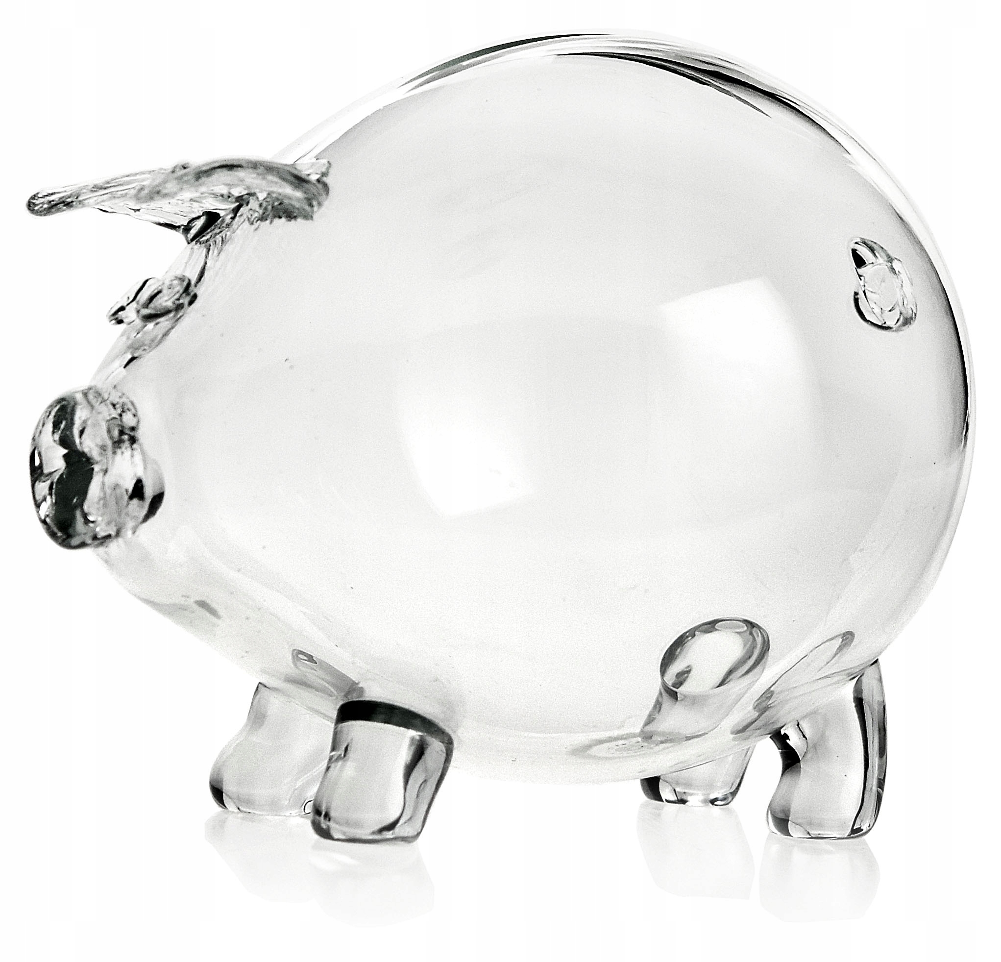 BEZBARWNA duża szklana ŚWINKA skarbonka na PREZENT Szkło-Krosno
