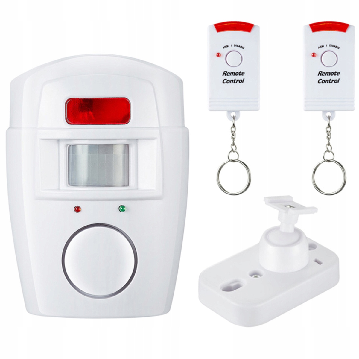 Набор имеет 2 пульта дистанционного управления (один запасной или для другого человека). Благодаря этим пилотам мы запускаем/запустить тревогу или выключить его. Затем, когда он обнаруживает движение, начинает скрипеть очень громко, громко модулируемый звук - 105 дБ! Он не будет отключен человеком, у которого нет пульта дистанционного управления, то есть нежелательный «гость» в нашем районе