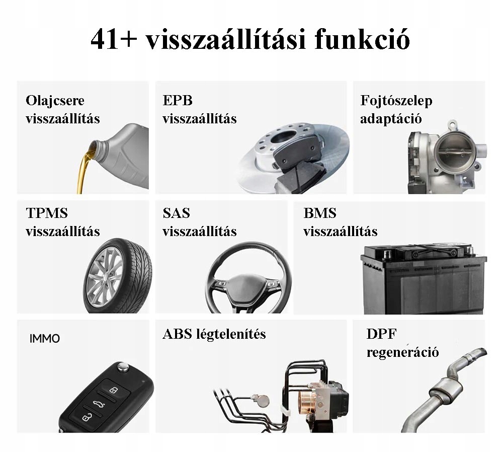 - 41+ функций восстановления, например. замена масла, EPB, TPMS, SAS, BMS и т. д.
