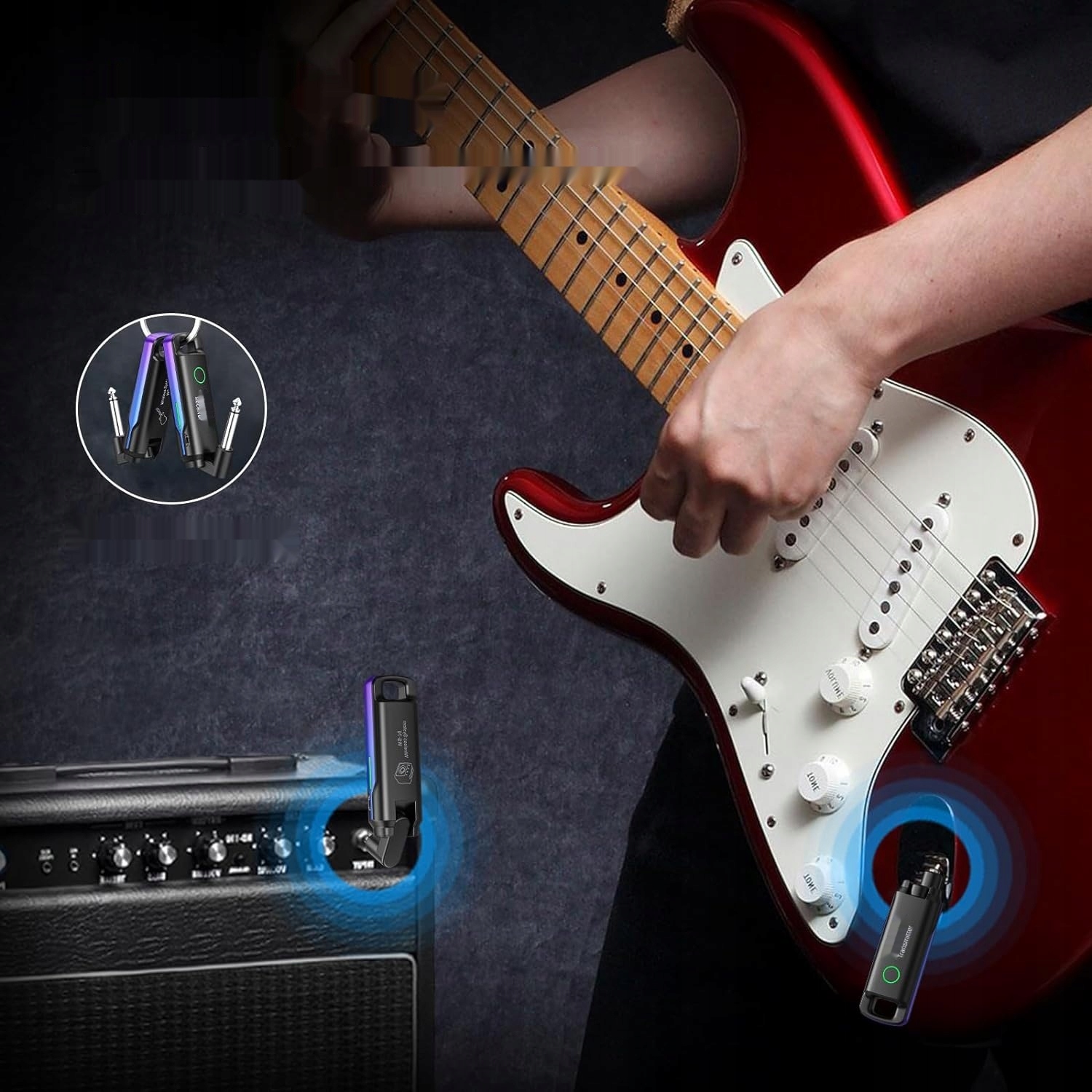✅ Plug & Play: просто нажмите и удерживайте кнопку сигнала, чтобы одновременно соединить передатчик и приемник. Профессиональная беспроводная система для электрогитары и баса. Никаких кабелей, больше свободы, задержка менее 3 мс, вы можете получить чистый и качественный звук своей гитары без задержек.