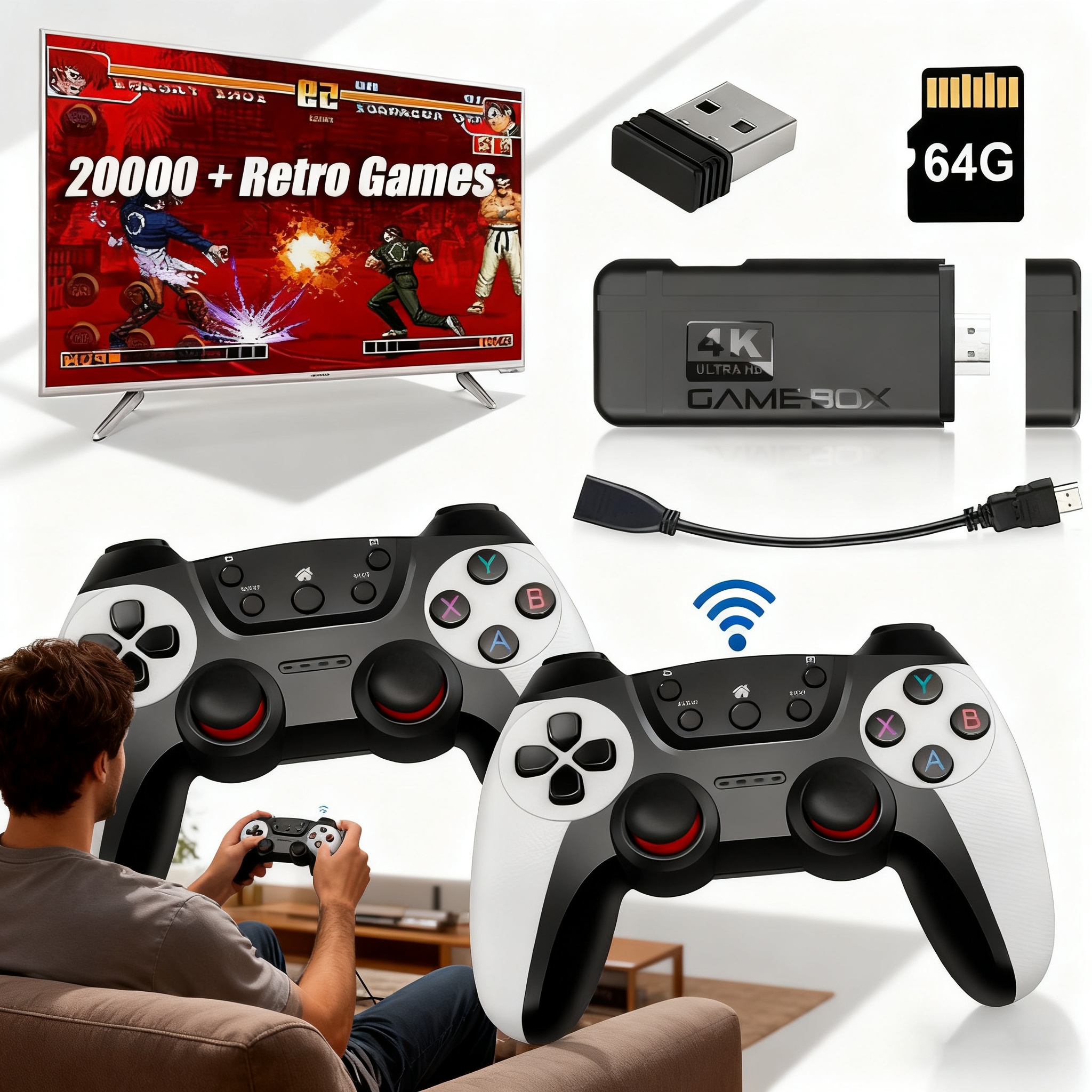 🏆 Оснащен беспроводным джойстиком 2.4G для дистанционного управления. (Примечание: во избежание путаницы только один контроллер может выбирать игры, а другой контроллер может играть только в игры для двоих).