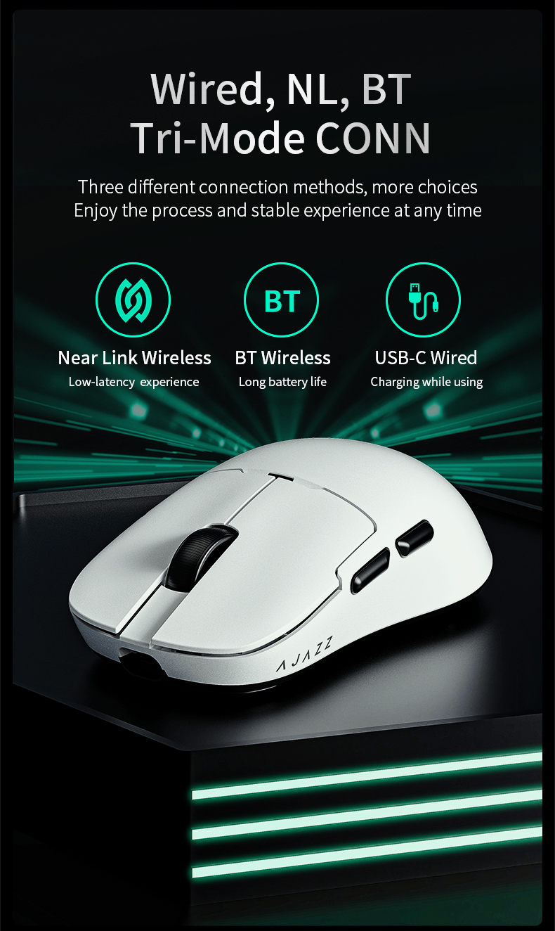 Беспроводная игровая мышь AJ159NL-L-BAT-LIFE, трехрежимная BT+2,4G, 800 мАч, 12000 точек на дюйм