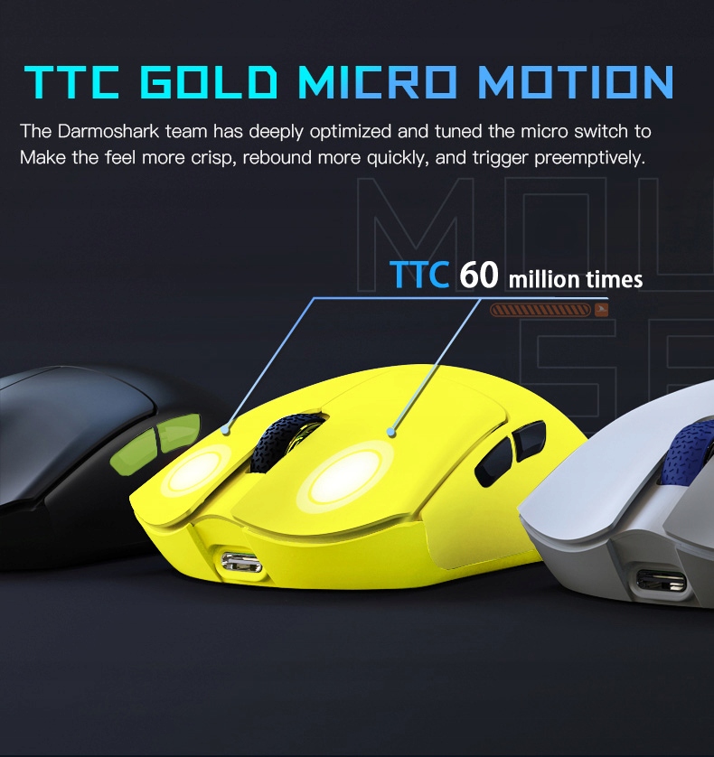 Команда Darmoshark тщательно оптимизировала и настроила микропереключатель, чтобы обеспечить более четкое ощущение, более быстрый отскок и срабатывание.