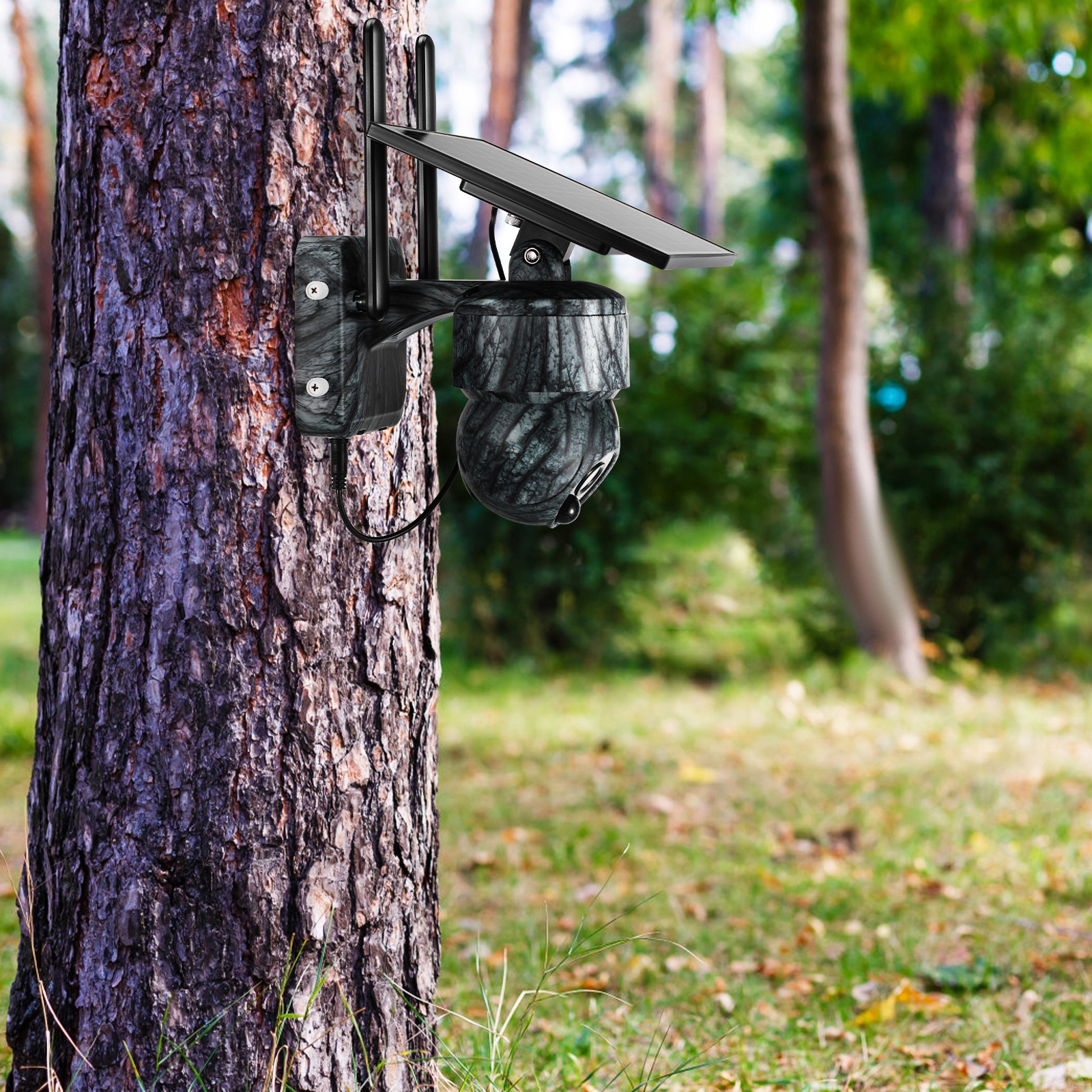 Подключите камеру к солнечной панели, и она будет работать бесперебойно днем и ночью.