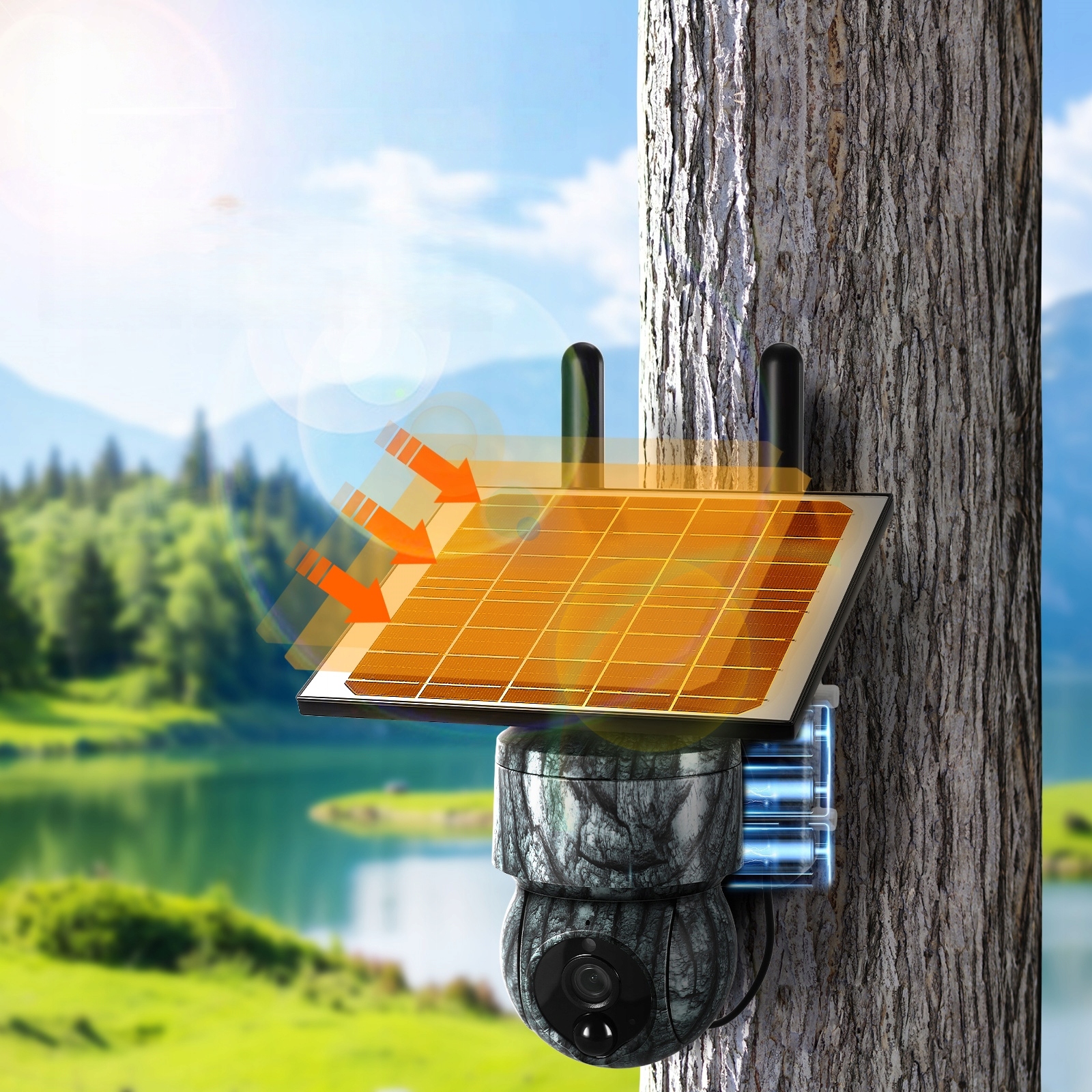 - ⭐【Высококачественная 3-мегапиксельная солнечная камера】обладая разрешением 3 МП, эта камера обеспечивает детализированные изображения, питается от солнечной панели и заряжается от встроенного аккумулятора. Оснащенная четырьмя инфракрасными светодиодными лампами, камера может снимать яркие изображения с высоким разрешением даже в условиях низкой освещенности, обеспечивая надежное наблюдение.