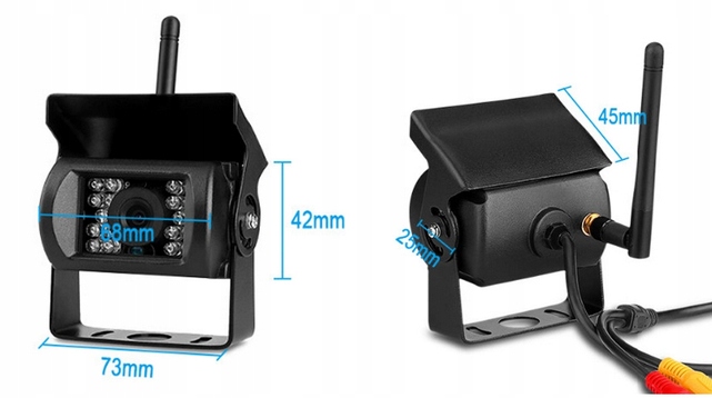Набор беспроводных камер заднего вида с датчиком парковки для грузовых автомобилей, грузовых автомобилей, автобусы, тракторы, комбайны и многие другие. ИК-датчик облегчает парковку даже в темноте! Благодаря задней камере маневрирование в крутых поворотах становится проще. Объектив устройства имеет угол обзора 170 градусов, что дает широкое изображение пространства позади автомобиля.
