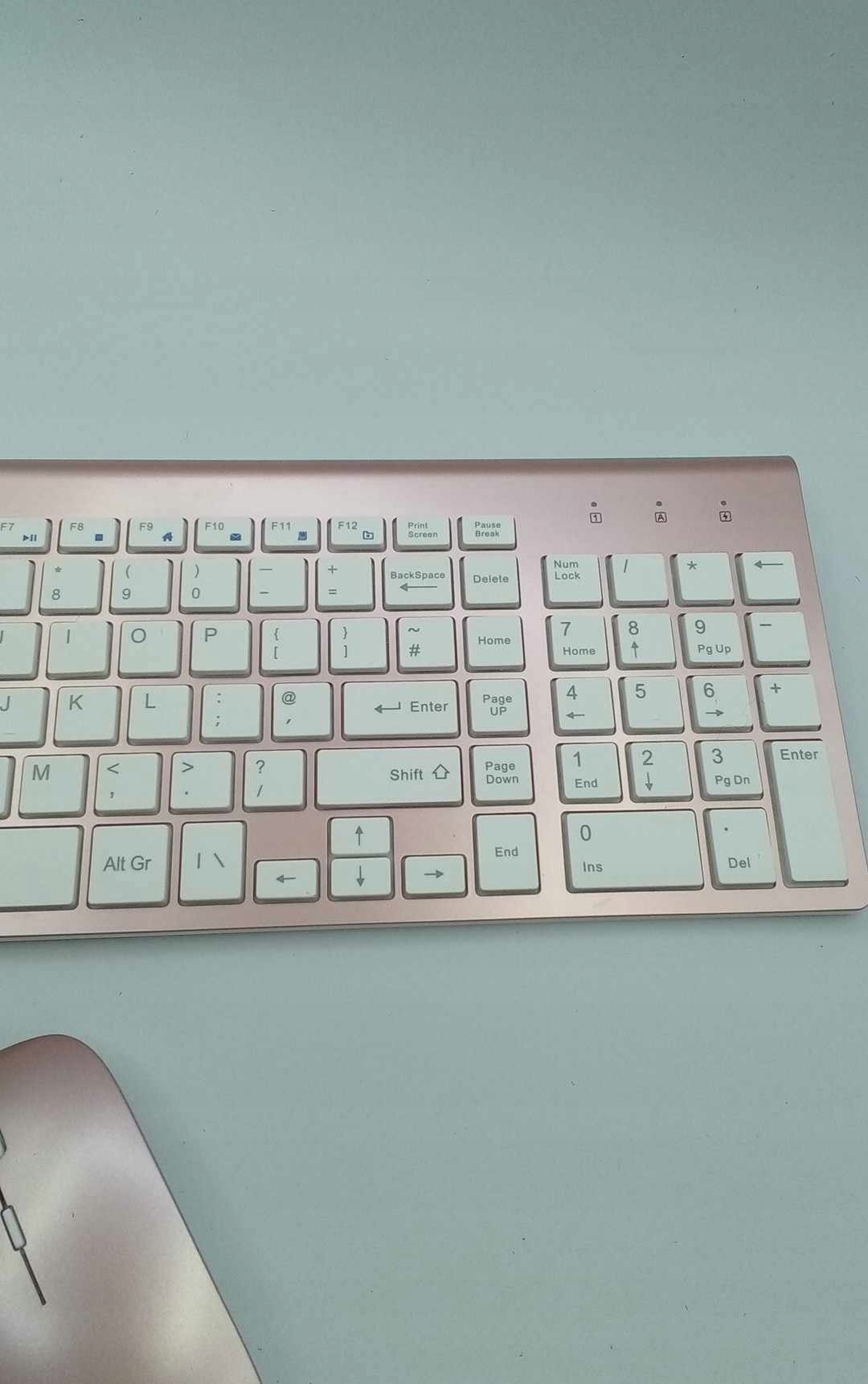 Wireless keyboard and Ultra Slim Combo mouse, TOPMATE 2.4G Silent compact USB 2400 dpi mouse and keyboard with scissor switch, for PCs/laptops/Windows/Mac - pink -gold white