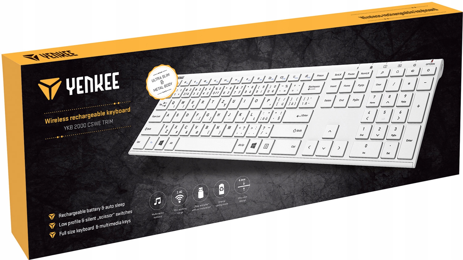 Беспроводная клавиатура YENKEE TRIM со встроенным аккумулятором, белая