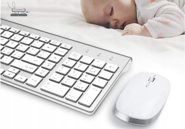 БЕЗДРОТОВА КЛАВІАТУРА ТА МИША Сріблясто-біла - КОМПЛЕКТ QWERTY ТИХИЙ