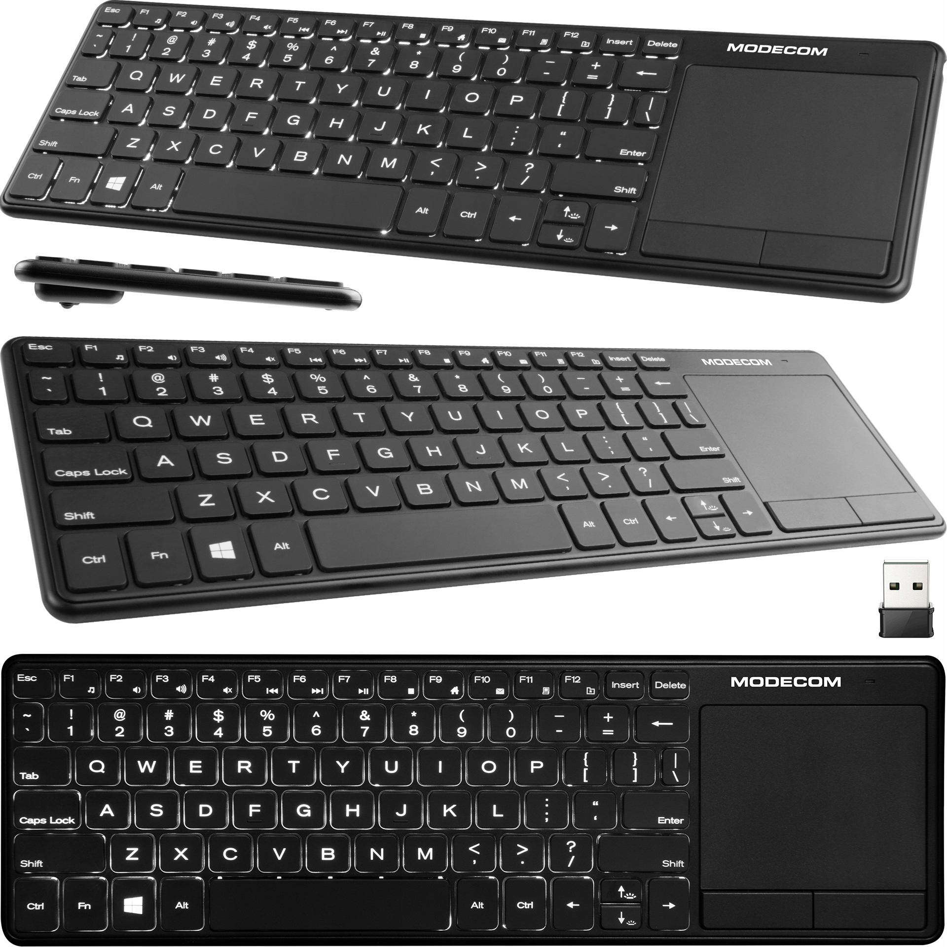 представляет собой беспроводную клавиатуру с подсветкой, оснащенную полным набором клавиш и встроенной сенсорной панелью с двумя кнопками. Благодаря этим возможностям письмо , перемещать, перетаскивать и увеличивать изображение или просто щелкать, это очень легко и удобно. Быстрая активация мультимедийных функций позволяет мгновенно получить доступ к сети или любимым мультимедийным файлам с фильмами, фотографиями и музыкой.