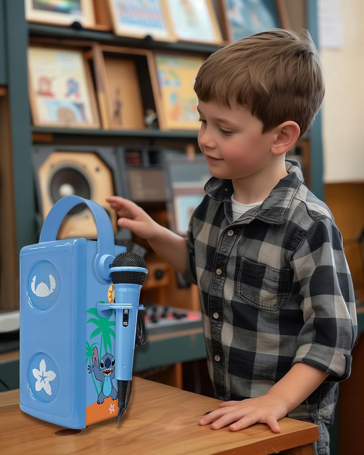 Динамика, оформленная в стиле Stitch, добавит очарования и веселья любому музыкальному сеансу. Он сочетает в себе функциональность с веселым и красочным стилем.
