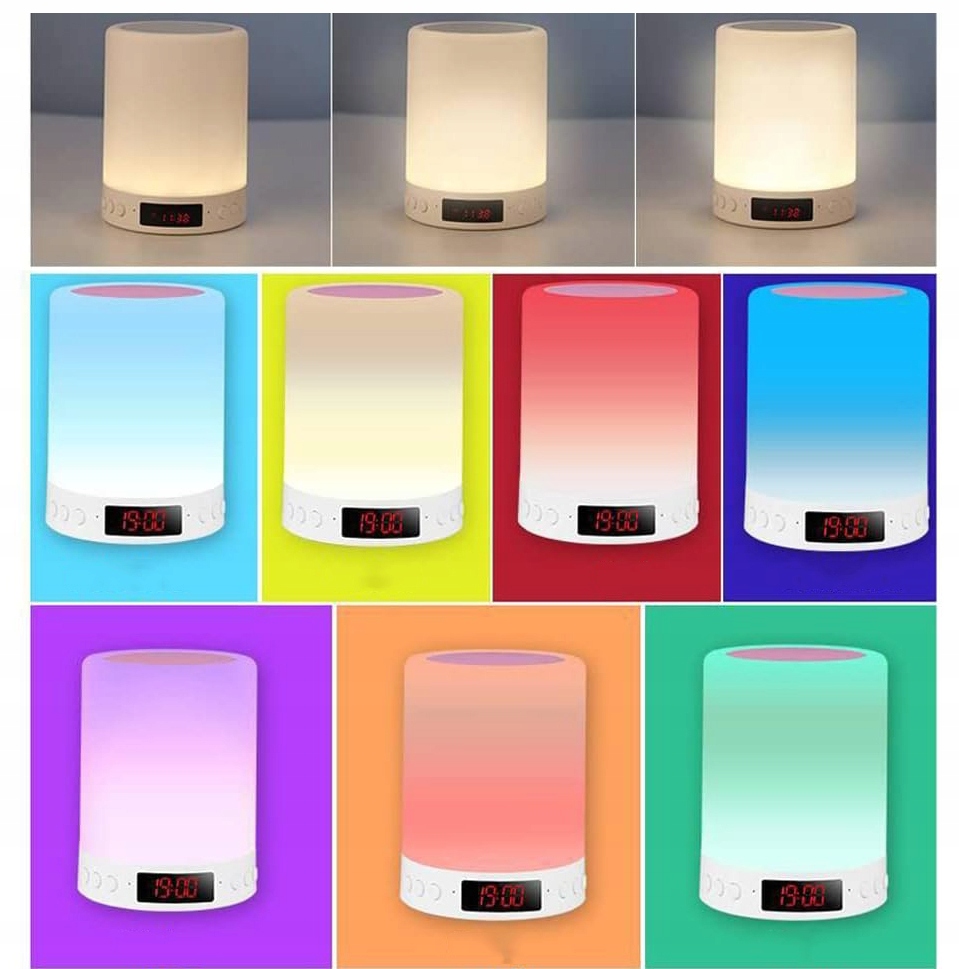 🎵🎵 Цифровой будильник: Большой ЖК-дисплей с легко читаемыми цифрами, временем и содержанием. интеллектуальная настройка будильника сна, автоматически выключает лампу и динамик после настройки. Вы можете использовать свою любимую песню в качестве мелодии звонка Bluetooth для светодиодного динамика и каждое утро просыпаться с прекрасным звуком и прекрасным настроением.