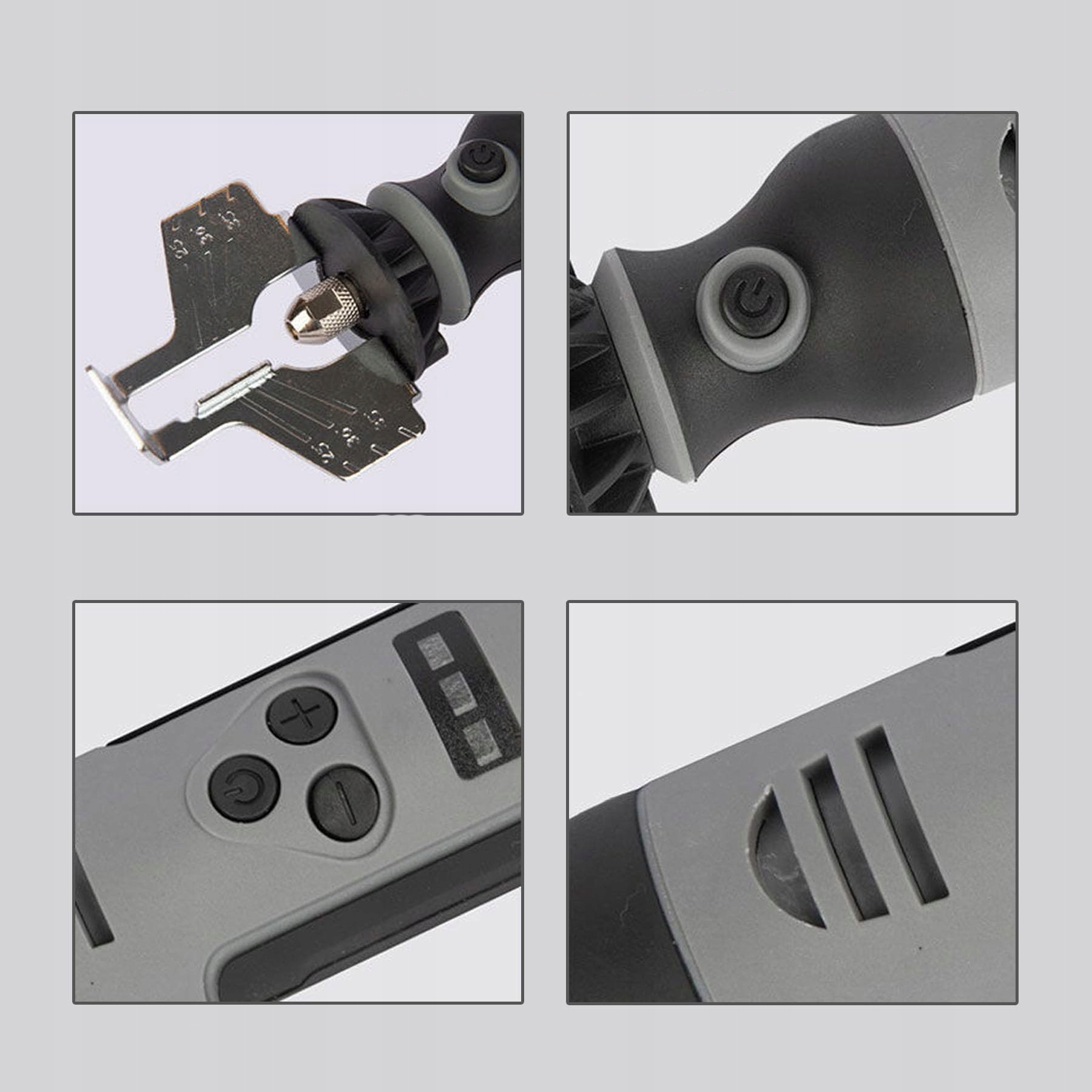 Цепная пила уничтожается со временем и использованием, ее эффективность снижается, и инструмент изношен. Эта точилка из электрической цепи имеет 5 уровней регулируемых скоростей в диапазоне от 5000 до 18 000 об / мин.