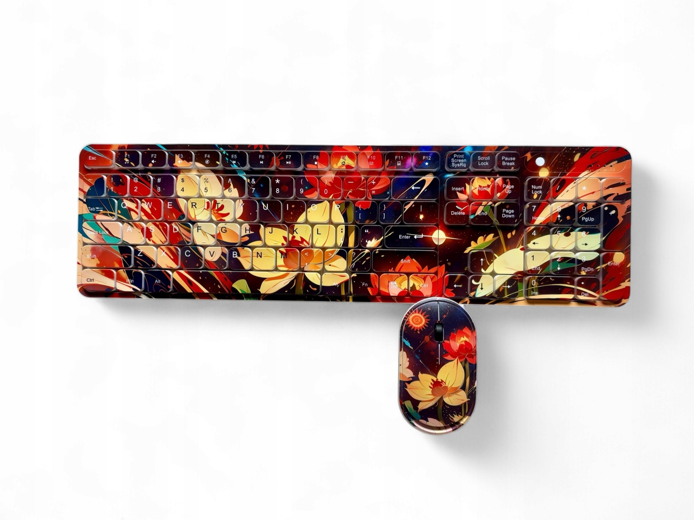 Беспроводная мембранная клавиатура + мышь + коврик с красочным рисунком