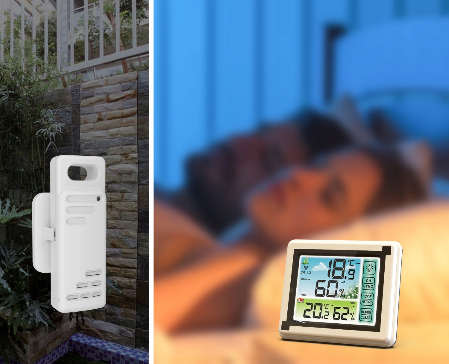 Наш продукт представляет собой новейшую модель функциональной метеостанции. Станция измеряет такие значения, как: температура и влажность. В комплект устройства входит специальный внешний датчик с радиусом действия до 60 метров, благодаря которому можно проводить измерения как в помещении, так и на открытом воздухе. Предоставленные значения очень точны и регулярно обновляются