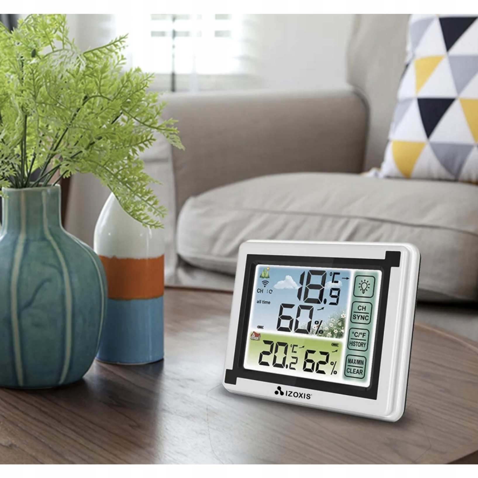 Беспроводная метеостанция — это современный аксессуар с четким дисплеем, с которого каждый может легко прочитать измеренные в данный момент значения. Прибор оснащен 4 кнопками: подсветка экрана, ch/sync - выбор канала или синхронизация чтения, градусы/история - переключение единиц измерения, запись истории и макс. min./clear – минимальная и максимальная записи и опция очистки памяти.