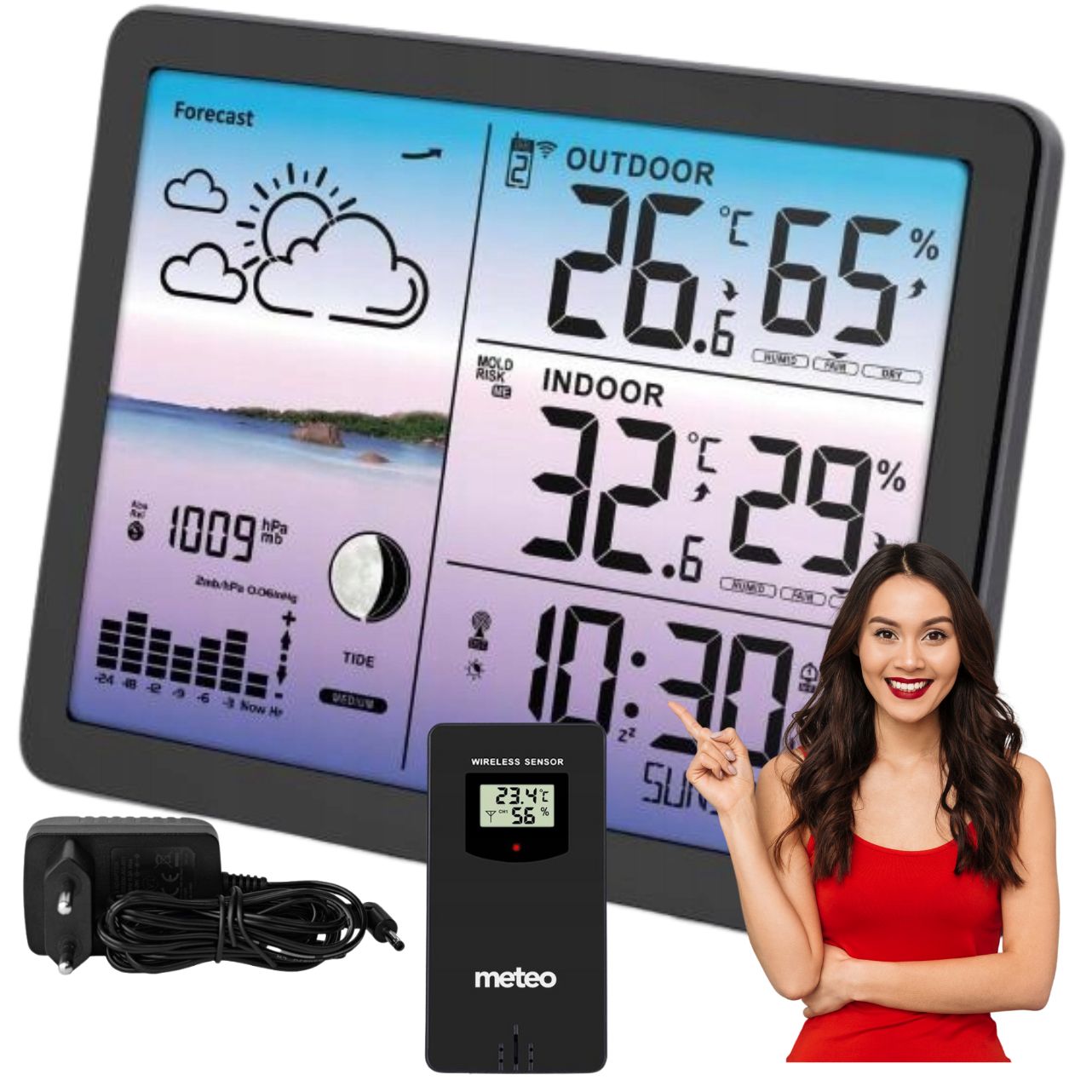 ✅ Империя Измерение температуры Империи + давление h2> - Размещено в любом месте внешнего датчика, беспроводная информация отправляет текущую информацию в нашу станцию относительно температуры и влажности воздуха.