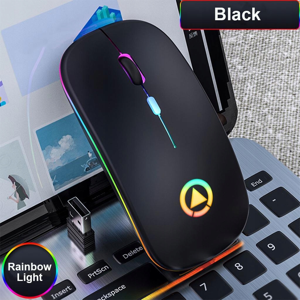 Бездротова миша 2,4 ГГц, 7 кольорів, безшумні миші USB, 3 регульовані DPI для ПК, чорний